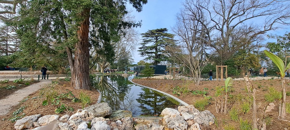 C’est Philippe Deliau et Juliette Hafteck du cabinet Alep (Atelier lieux et paysages) à Cadenet qui ont participé à cette aventure et élaboré la renaissance de ce site lancée en 2024 au terme de mois et de mois de cogitation et de consultation des plans et dessins initiaux, tout en prenant en compte le changement climatique. « On a voulu continuer le rêve du concepteur, Jean-Pierre Barillet-Deschamps, un visionnaire qui a imaginé ce magnifique jardin. Les arbres morts ont été dégagés, le tracé redessiné, les ovales du bassin maçonnés, la grotte restaurée, les perspectives redéfinies. On retrouve chutes d’eau, rochers et courbes qui serpentent sous les frondaisons parmi 50 nuances de verts » précise-t-il.