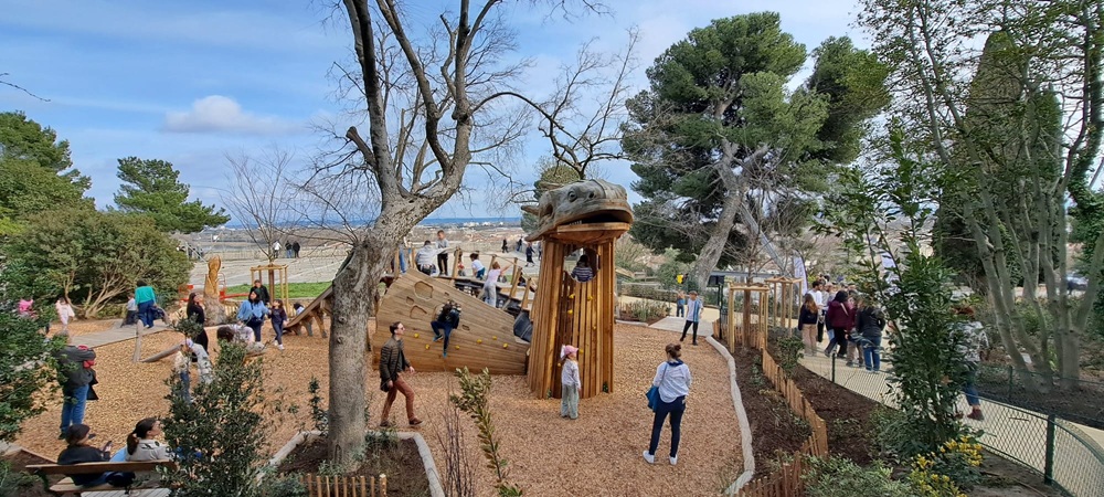 Au milieu de centaines d’Avignonnais présents et ravis de cette renaissance de leur lieu de promenade nature, Cécile Helle, avant de couper le ruban tricolore pour l’inauguration du jardin, a rappelé qu’au fil des ans « il s’était fragilisé, la terre végétale qui avait été apportée en 1865, au fil des ans a été tassée par le piétinement des promeneurs, emportée par l’érosion, donc moins nutritive pour la végétation. Les espèces replantées sont rustiques, résistantes à la canicule et au mistral, moins gourmandes en eau. Le réseau hydraulique a été refait avec même un brumisateur. Pour les enfants, l’aire de jeux a été transformée avec toboggan et prises d’escalade sur un ‘drac’ en bois de 4m de haut. Une créature mi-dragon, mi–poisson imaginée par Frédéric Mistral, Prix Nobel de Littérature (1904) dans son ‘Poème du Rhône’ en 1897. Le local pour les jardiniers et écogardes est nettement plus confortable et des sanitaires nouveaux ont été installés, accessibles à tous, y compris aux personnes à mobilité réduite. »
