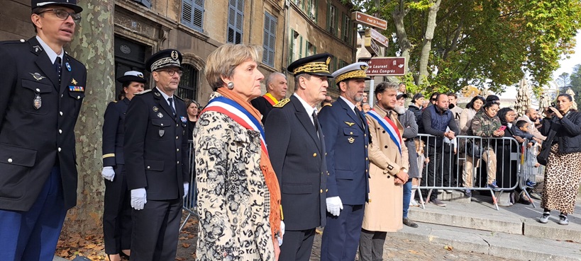 Le Préfet de Vaucluse a ensuite lu le long message du 11 novembre de la Ministre des Armées et des Anciens Combattants, Catherine Vautrin et de la Ministre Déléguée, Alice Rufo (qui n’est autre que la fille du célèbre pédopsychiatre toulonnais Marcel Rufo).
