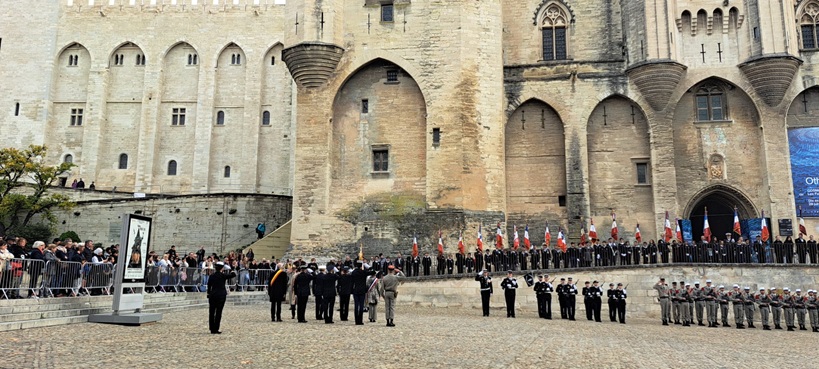 C’est au pied de ‘L’Astrolabe’, l’œuvre de l’artiste-plasticien Jean-Michel Othoniel, sur le parvis du Palais des Papes, qu’a été célébré le 107e anniversaire de l’Armistice de la 1ère Guerre Mondiale.