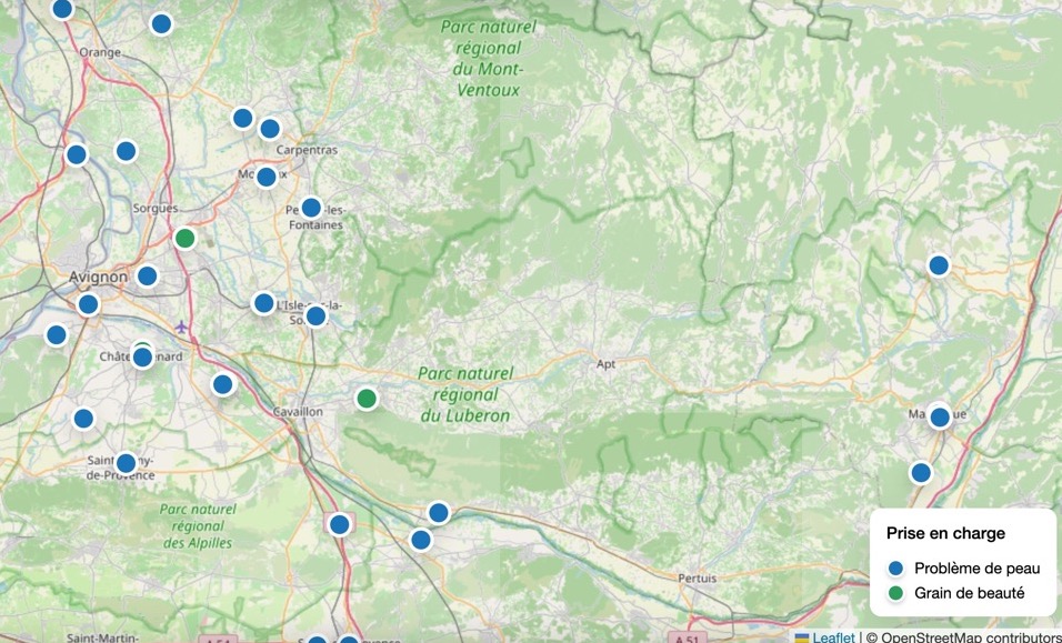Bollène, Avignon, Vedène, Le Thor, L’Isle-sur-la-Sorgue, Coustellet, Robion, Mérindol. De nombreuses pharmacies vauclusiennes disposent désormais des services de téléexpertise dermatologique Pictaderm et Skinmed pour les problèmes de peau et les grains de beauté.