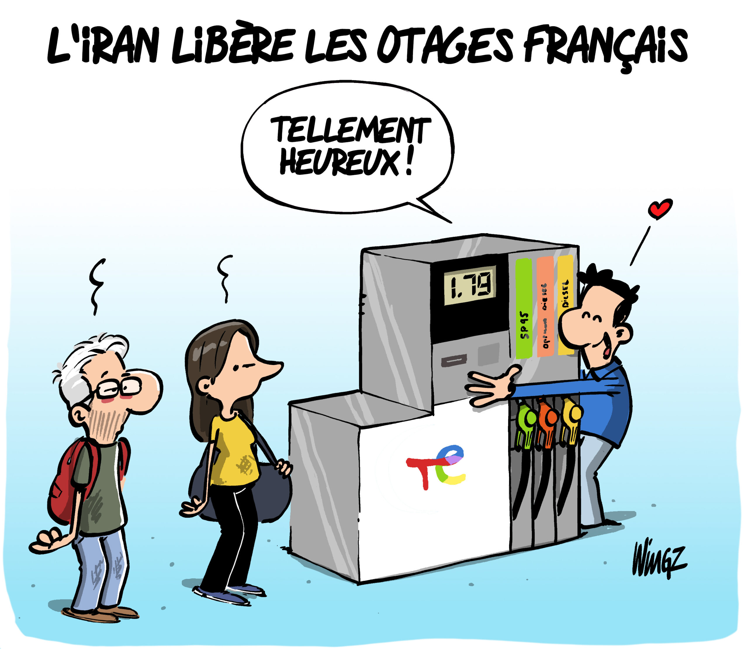La libération des otages français par l’Iran vue par Wingz pour L’Echo du Mardi