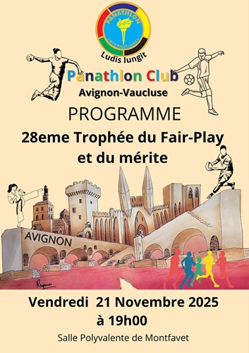 Le Panathlon club Avignon-Vaucluse, installé à Montfavet, organise la 28e édition des Trophées du fair-play et du mérite ce vendredi 21 novembre à la salle Félicien Florent à Avignon.