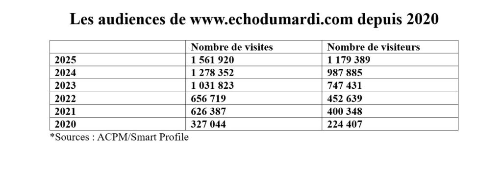 Le site de l’Echo du mardi, www.echodumardi.com, a enregistré un nouveau record d’audience en 2025. Premier journal d’annonces légales de France à avoir fait la bascule complète de sa version papier vers le numérique en janvier 2021, le doyen des médias vauclusiens (nous sommes nés en 1839) totalise 1 561 920 visites en 2025. C’est près de 300 000 clics de plus qu’en 2024. Depuis 2020, notre audience a ainsi été multipliée par près de 5.
