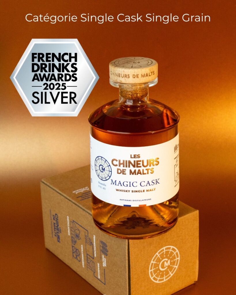 « L’engouement autour des whiskies français ne cesse de grandir, et nous sommes heureux de contribuer à cette belle dynamique avec passion et créativité », déclarent Loïc Puviland et Jean-Yves Pomaret, à la tête de la distillerie artisanale de whisky Les Chineurs de Malts au Thor.