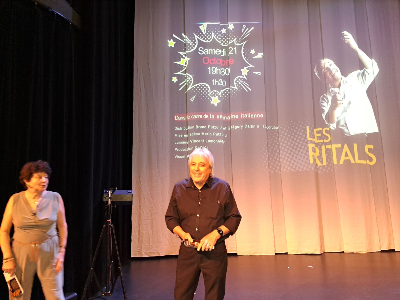 Avec sa complice dans la vie comme à la scène, Danielle et « Chipie », une petite caniche au collier rouge, il égrène ce qui attend les fidèles du théâtre de la Rue des Teinturiers. A commencer, le 21 octobre, par « Les ritals », un roman autobiographique de François Cavanna publié en 1978. Il avait déjà été adapté pour la TV par Marcel Bluwal et interprété par Benoît Magimel (1991). Là, à Avignon, c’est Bruno Putzulu qui joue, accompagné à l’accordéon par Grégory Daltin, dans une mise en scène de son frère, Mario.