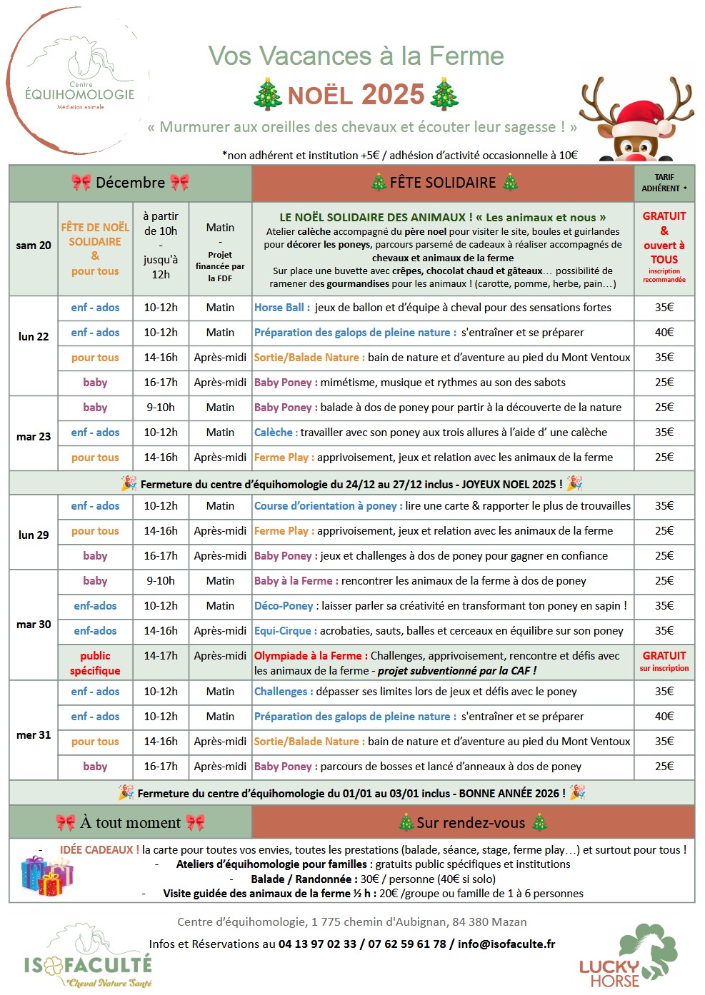 Information ou réservation : 07 62 59 61 78 / 04 13 97 02 33 ou info@isofaculte.fr