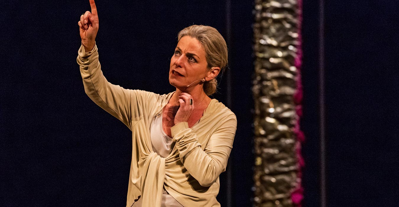 La comédienne Lucilla Giagnoni interprète pour la 1ère fois en France ‘La Divina Commedia’. «C’est une femme qui chante et raconte des histoires parce que, le plus souvent, ce sont les femmes qui, sans médiation, prononcent le désir de paix. Et parce que l’âme a sûrement une voix féminine.» relate Lucilla Giagnoni. Paroles incantatoires peut-être incompréhensibles à l’écoute, rituels tels des prières mais paroles réconfortantes salutaires et poétiques.