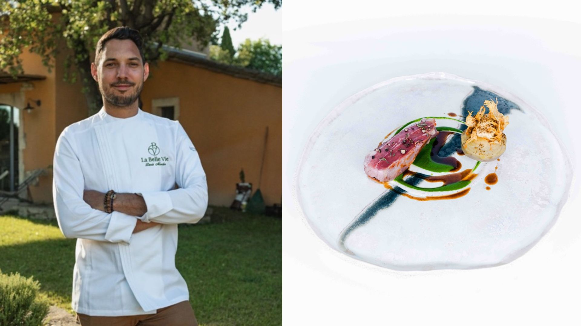 Denis Martin, qui a commencé sa carrière à l’École Hôtelière d’Avignon, est aujourd’hui aux commandes du restaurant La Belle Vie, à Saint-Hilaire-d’Ozilhan dans le Gard. Pour régaler vos papilles et celles de vos proches, il vous dévoile sa recette de gigot d’agneau de l’Aveyron cuit lentement avec artichauts barigoule, yaourt épicé et guanciale.