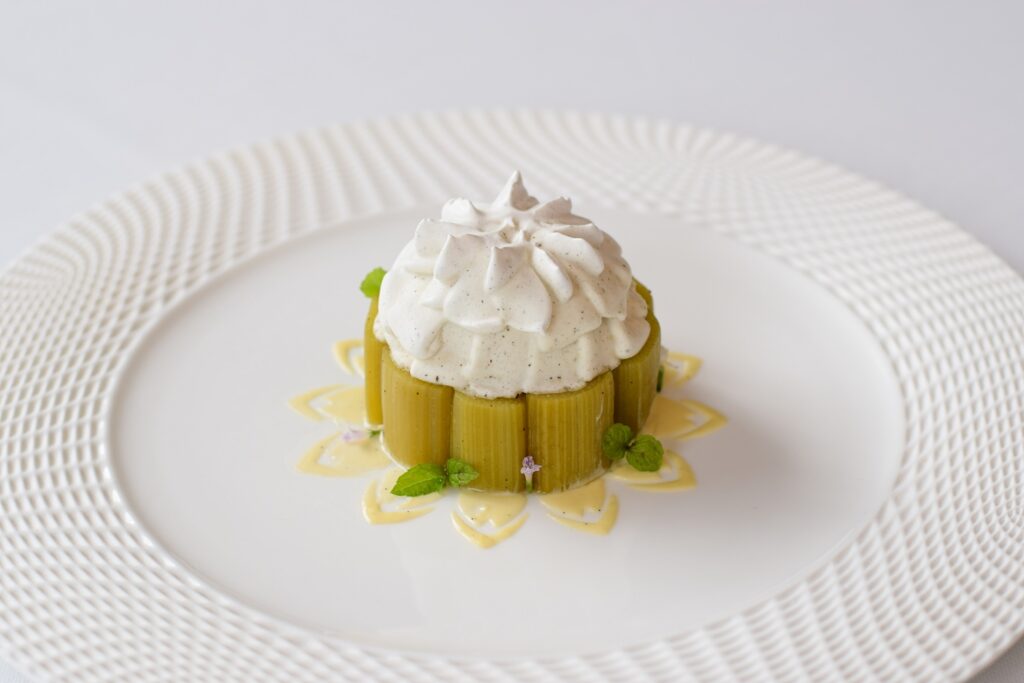 Alaïs Vaubourg est la cheffe pâtissière du restaurant La Cabro d’Or de Baumanière, aux Baux-de-Provence. Pour régaler vos papilles et celles de vos proches, elle vous dévoile sa recette du dessert ‘L’Immortelle des Baux’ avec rhubarbe marinée et confite à la vanille florale de Tahiti, et légère meringue comme un vacherin.