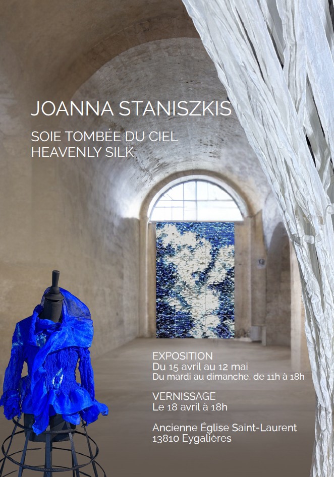 Soie tombée du ciel / Heavenly Silk. Du 15 avril au 12 mai 2026, du mardi au dimanche, de 11h–18h. A l’Ancienne église Saint-Laurent, à Eygalières.