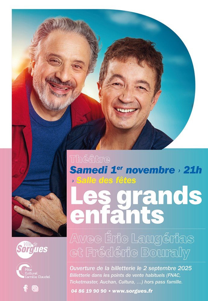 ‘Les Grands Enfants’. Samedi 1er novembre. 21h. Pôle culturel Camille Claudel. 285, avenue d’Avignon. Sorgues. Tout public. Durée : 1h30. Tarifs : de 10€ (Pass famille) à 30€.
