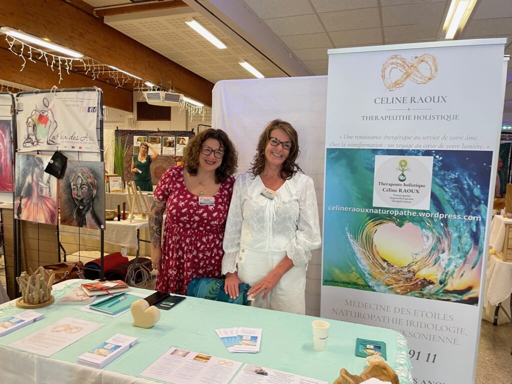 Dès l’entrée, les visiteurs pouvaient flâner entre les stands de praticiens : massages, sonothérapie, soins énergétiques, radiesthésie, psychogénéalogie, constellations familiales… et d’artisans autour de la nature et de l’équilibre. Près de 47 exposants étaient présents, certaines candidatures ont même dû être refusées faute de place.