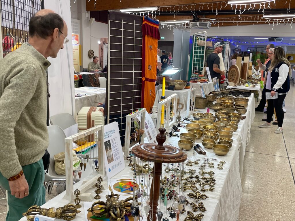 Dès l’entrée, les visiteurs pouvaient flâner entre les stands de praticiens : massages, sonothérapie, soins énergétiques, radiesthésie, psychogénéalogie, constellations familiales… et d’artisans autour de la nature et de l’équilibre. Près de 47 exposants étaient présents, certaines candidatures ont même dû être refusées faute de place.