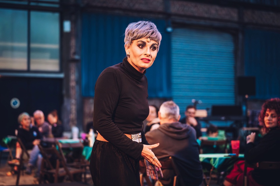 Le décor prend l’apparence d’un cabaret, où la musique et le chant se mêlent au récit, avec le fadorebetiko de la chanteuse pianiste Kalliroï Raouzeou, accompagnée du guitariste Jérémie Schacre. Le cabaret, lieu récurrent dans les œuvres de Margo Chou, crée une ambiance intimiste entre les personnages et le public.