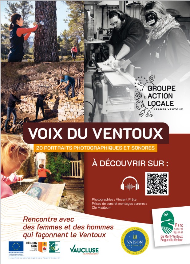 Voix du Ventoux. 20 portraits photographiques et sonores. Photographies de Vincent Prête. Prises de sons et montages sonores de la Compagnie avignonnaise Maâloum. Conception : Parc naturel du Mont-Ventoux. Juin 2025. Du 3 au 22 novembre. Ferme des arts. Médiathèque. Rue Bernard Noël à Vaison-la-Romaine.