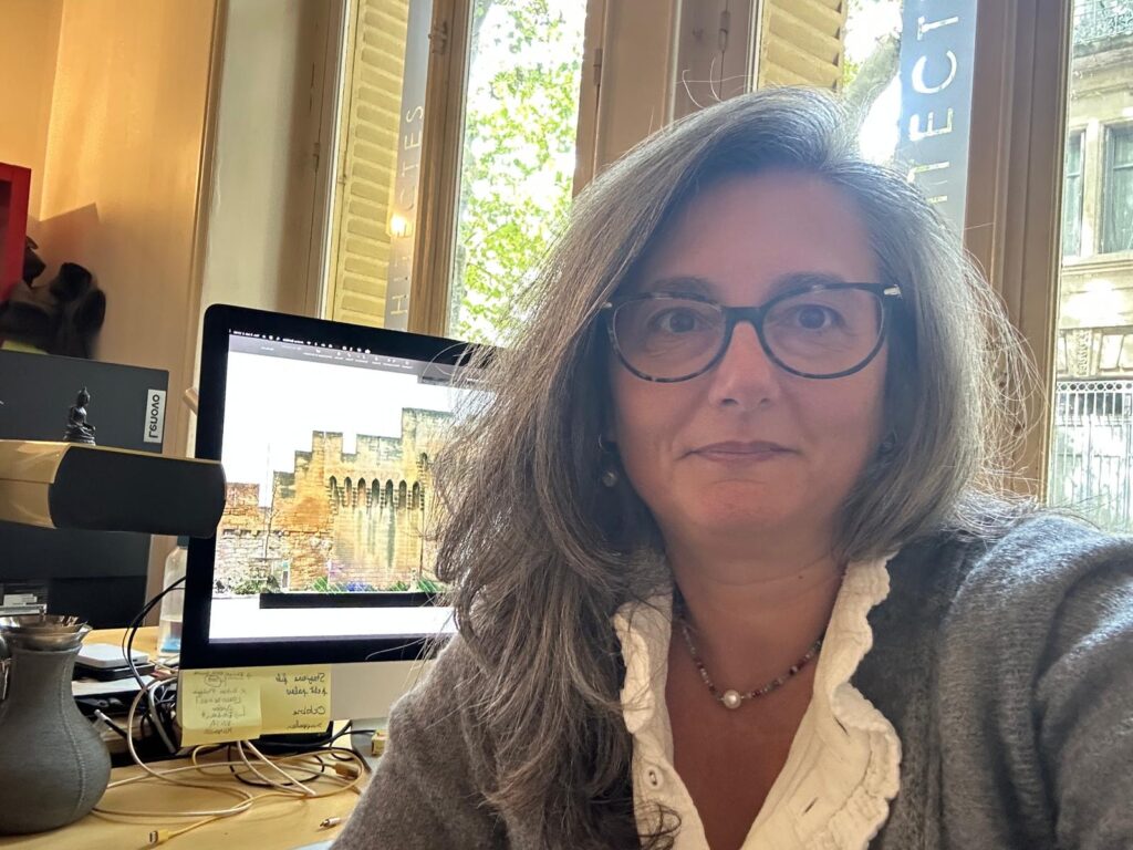 et diplomée de l’école de CHAILLOT à Paris, elle décide de se spécialiser dans la restauration et la valorisation du patrimoine, après avoir suivi en Italie, les cours d’Andrea BRUNO, architecte. Son parcours la conduit à exercer auprès d’architectes des Monuments Historiques, ou architectes du patrimoine, à Paris et Lyon. Elle choisit ensuite de rejoindre “D3”, où sa première collaboration professionnelle avait débuté en 2002. Elle intervient aujourd’hui à titre libéral, sur des édifices classés ou inscrits monuments-historiques, communaux ou privés. Elle est parallèlement architecte conseil pour le CAUE , où elle accompagne des Communes du Vaucluse dans les domaines de l’architecture, de l’urbanisme, de l’environnement et du paysage. Elle propose également aux écoles, en binôme avec Raffaella TELESE architecte, des ateliers de sensibilisation de l’architecture pour les enfants.