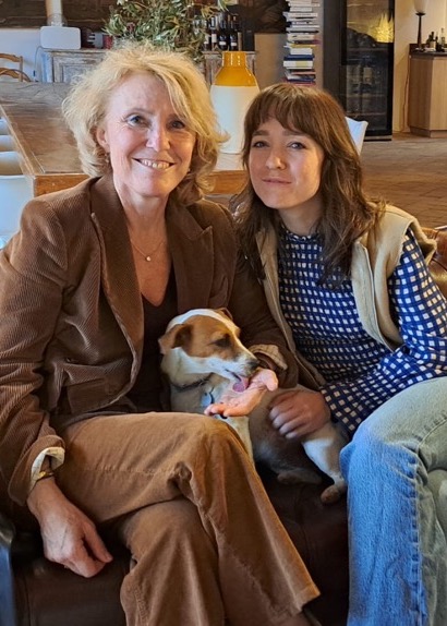 Isabel et Guillemette, accompagnées de la petite chienne Philia, qui a une cuvée à son nom. ©Andrée Brunetti / L’Echo du Mardi