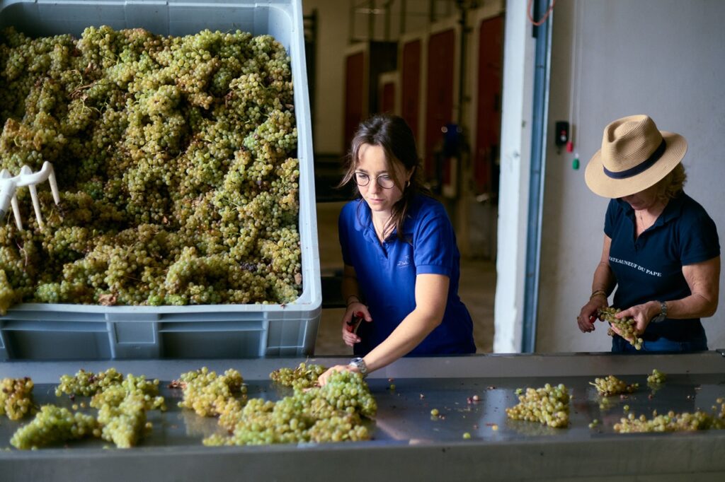 Passion à quatre mains de la vigne et du vin entre Isabel Ferrando et sa fille Guillemette. Quand la maman est devenue propriétaire des 32 hectares (24 ha en appellation Châteauneuf et 8 en Côtes-du-Rhône), en 2003, sa fille avait 5 ans. Après des études, hypokhâgne, khâgne, Université Paris-Dauphine, Londres, Berlin, BTS en viti-œnoculture à Beaune, stages dans les vignobles de Californie et d’Afrique du Sud, elle est revenue à la maison il y a deux ans.