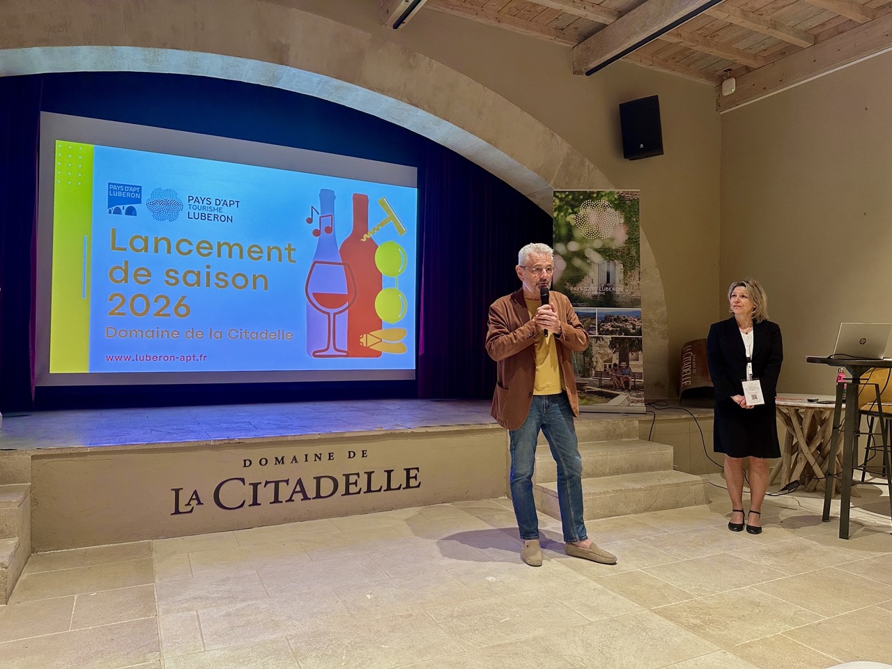 Chaque année, l’office de tourisme Pays d’Apt Luberon organise une soirée de lancement de saison à l’arrivée des beaux jours dans un lieu touristique phare du territoire. Après le Domaine des Andéols à Saint-Saturnin-lès-Apt l’année dernière, c’est au Domaine de la Citadelle à Ménerbes, « l’un des plus beaux villages de France », comme l’a précisé le maire fraîchement élu de la commune Patrick Merle, que ce sont réunis les professionnels du tourisme du territoire.