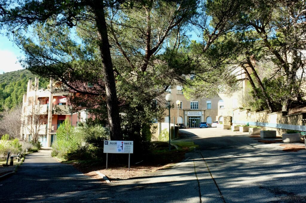 Une fois passé les piliers d’un ancien portail qui marque l’entrée du site, la route, pour accéder aux bâtiments principaux du centre hospitalier de Roquefraîche, est faite de nombreux virages. Elle serpente au milieux d’une forêt de pins et de chênes verts, laissant émerger ça et là quelques maisons dont certaines sont occupées par des locataires. Une fois arrivé au cœur du site, vous faites face à un bâtiment central constitué d’un ensemble assez hétéroclite. Tel un appendice circulaire, une construction des années 80 est venue se greffer sur celle des années 40. Un choix architectural discutable. La taille de l’ensemble impressionne. Sur le parking quelques voitures sont garées. Signe d’une activité encore certaine. Sur le parvis de l’entrée on peut encore y croiser quelques rares pensionnaires de l’EHPAD (la seule activité du centre aujourd’hui) qui profitent de l’air frais et du soleil d’hiver. Tout pourrait y inspirer calme et sérénité. Mais derrière ce décor c’est une fin de partie qui se joue. Une page est en train de se tourner sans forcément qu’on puisse connaître le contenu de la suivante. Et c’est bien là tout le problème.
