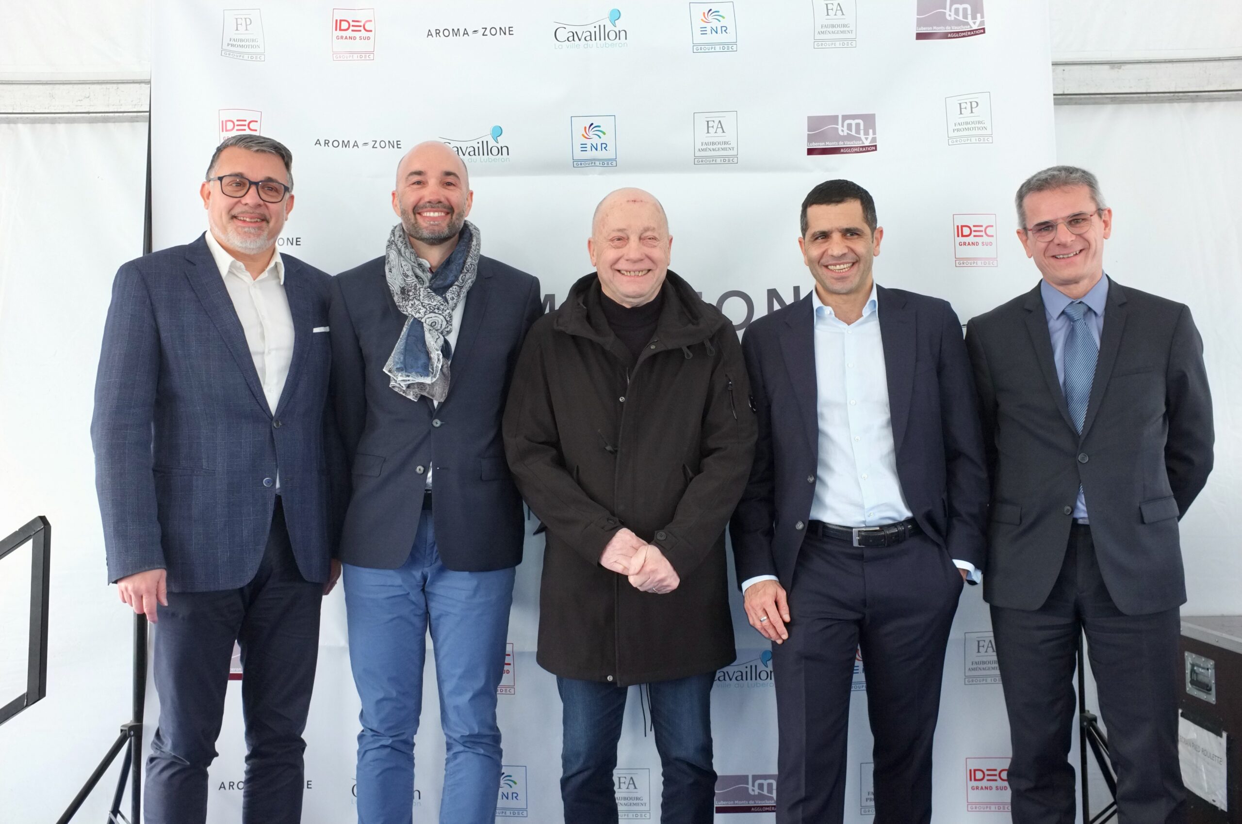 Sébastien Picard directeur général d’IDEC, Laurent Lucasson directeur des opérations d’Aroma-Zone, Gérard Daudet Maire de Cavaillon, Chazli Baalbaki directeur général de Faubourg Promotion et Sebastien Michel directeur général d’ENR Solar.