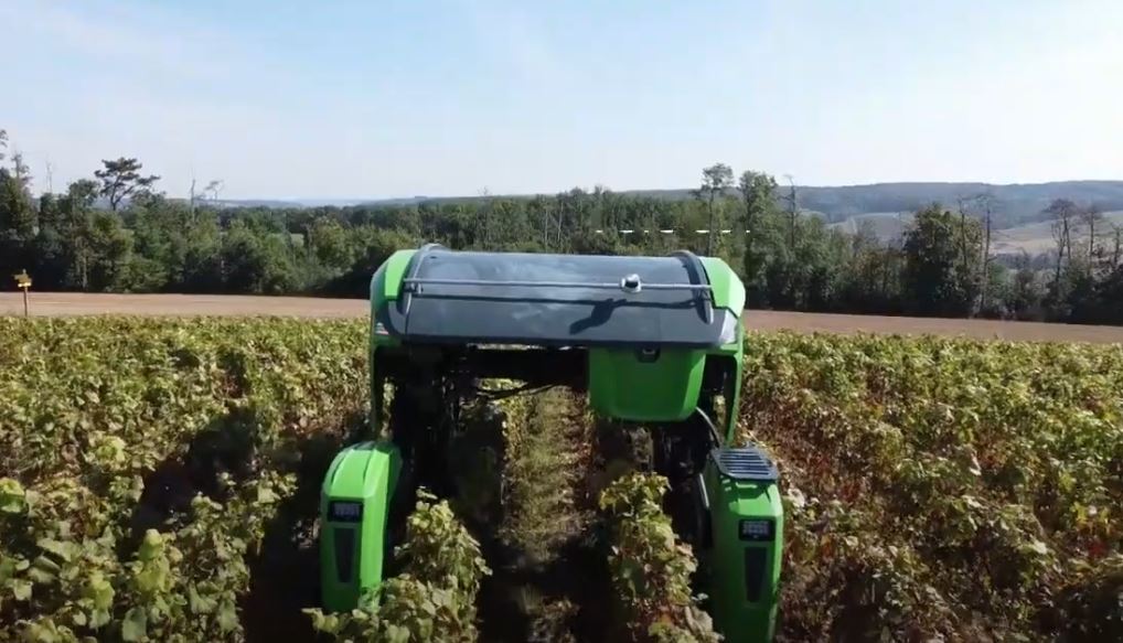 C’est le groupe Perret, entreprise familiale née il y a plus d’un siècle à Bagnols-sur-Cèze et aujourd’hui installée à Tresques (Gard) qui a présenté en avant-première ce tracteur innovant, un robot conçu par les ingénieurs de la société nantaise Sitia et commercialisé par Chabas. Il peut aussi bien travailler seul dans les vignes que dans les champs de fruits et légumes. Un engin couleur vert-pomme de près de 3 tonnes, 3, 80m de long, d’une largeur variable d’1m à 2,75m et capable de se déplacer à 9km/h.
