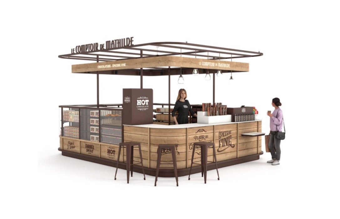 Les kiosques, qui font entre 12 et 20 m², présenteront une partie de l’offre classique et incontournable que l’entreprise propose dans ces boutiques et sur son site internet, mais aussi de la vente en vrac ainsi qu’une offre de dégustation avec gourmandises et boissons.