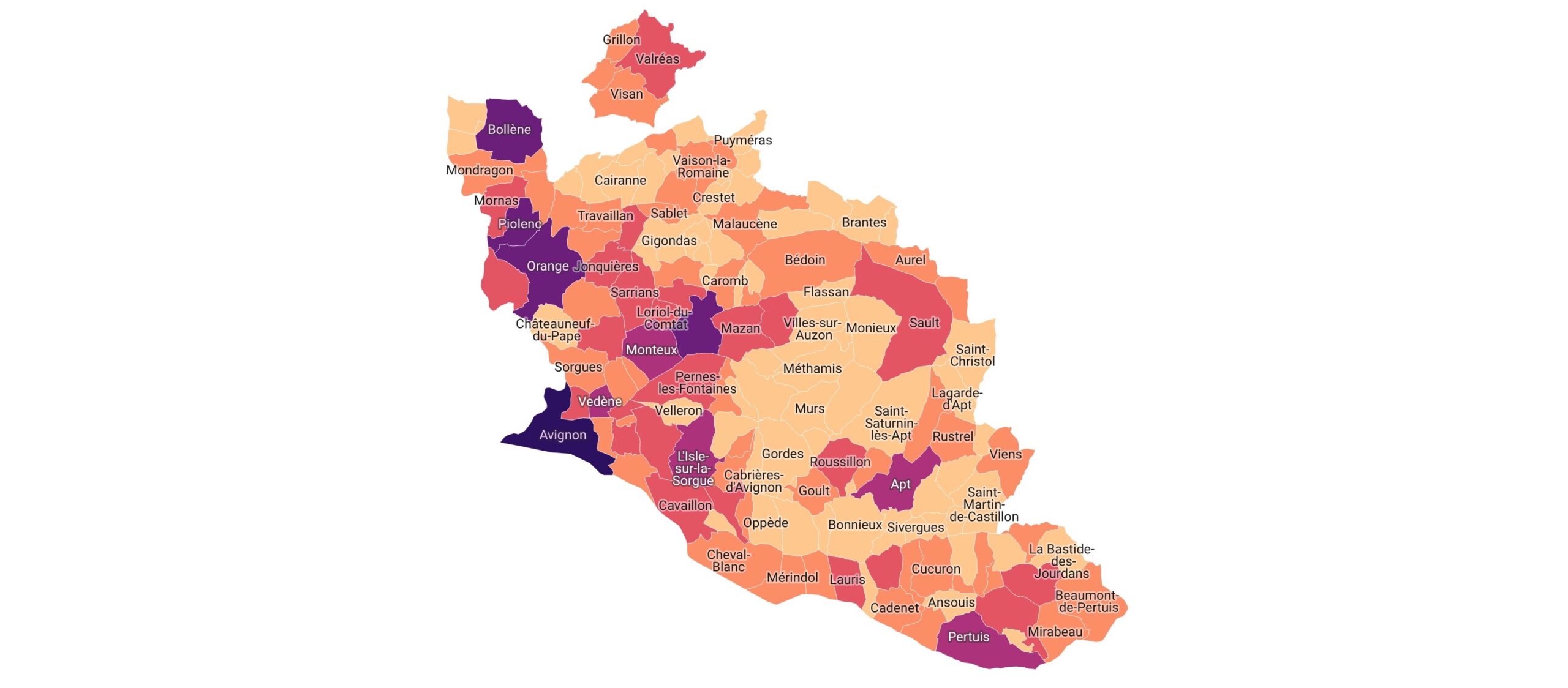 Derrière, ce choix se limitera à 4 listes dans 5 communes (Pertuis, Apt, l’Isle-sur-la-Sorgue, Monteux et Vedène). Par ailleurs, 3 listes sont en lice dans 24 autres communes du département (voir carte ci-dessous).
