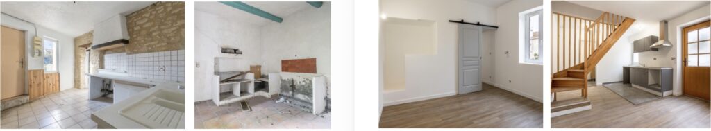À Châteaurenard, le modèle prend une autre dimension, plus urbaine encore, avec un ensemble de maisons de village rue des Pensionnaires, en plein cœur du centre ancien. Le montage annoncé est révélateur avec une acquisition à 58 000€ acte en main et un budget prévisionnel de travaux de 450 000€, pour la création, à terme, de 8 logements, avec un DPE cible passant de E à C, le tout dans un partenariat étroit, avec la mairie. Cette opération fait d’ailleurs suite à un précédent chantier mené rue de la Calade qui a abouti à la rénovation complète d’un immeuble du centre ancien, avec trois logements et deux commerces. Autrement dit, il ne s’agit plus seulement de sauver des biens isolés, mais de remailler un tissu urbain.