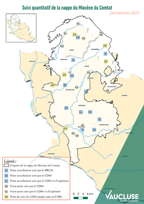 La gestion de l’eau représente un enjeu majeur pour l’avenir du département de Vaucluse. Ce dernier a pris l’initiative de mobiliser l’ensemble des acteurs concernés sur cette problématique dès 2022. Différents axes de travail ont été définis collectivement dont un suivi pointu sur la nappe du miocène, principale réserve d’eau du département.
