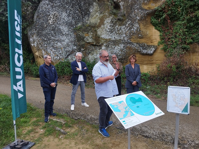 Dominique Santoni, Présidente du Conseil départemental de Vaucluse, était présente sur le terrain la semaine dernière pour découvrir cette nappe, en présence de nombreux acteurs concernés par cette problématique. Le rocher de Rocalinaud à Beaumes-de-Venise est un vestige d’une dune sous-marine, représentative d’un type de structure présent dans cette nappe du miocène où l’eau est piégée entre les grains de sable. Elle constitue la principale ressource en eau potable du département. L’objectif pour tous les acteurs concernés par la ressource en eau, à commencer par le Conseil départemental, est de connaître la ressource réelle en eau de cette nappe qui n’est pas illimitée mais également de pouvoir quantifier son niveau avec une plus grande précision.