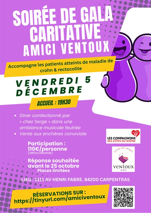 Une soirée de gala solidaire sera organisée à Carpentras le vendredi 5 décembre prochain au profit de l’association des Amis des maladies inflammatoires chroniques de l’intestin (AMICI Ventoux). Il reste encore quelques places.