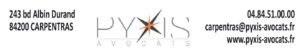 – Maître Lionel FOUQUET, Membre de la SELARL PYXIS AVOCATS, avocat poursuivant la vente, 243 Bd Albin Durand à Carpentras, Tél : 04.84.51.00.00 qui, le cas échéant, peut être chargé d’enchérir.